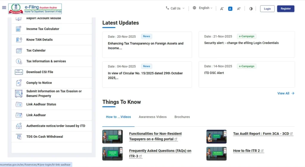 Step 2:- As soon as you visit the official website, you will find the ‘Link Aadhaar’ option there; you will need to click on it.