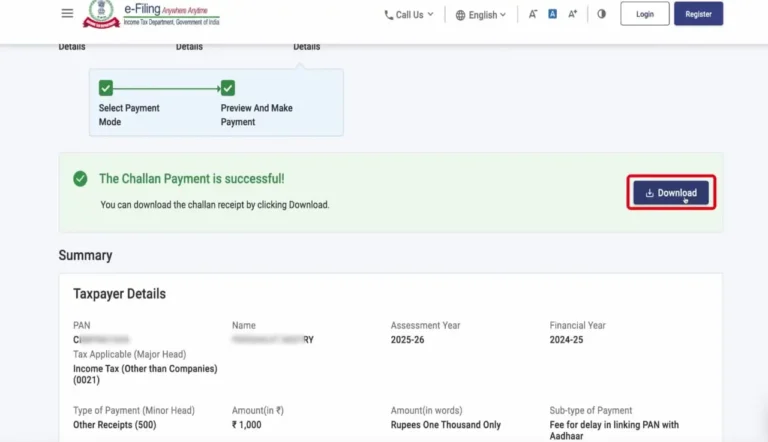 Step 9:- Once you complete the payment, an option to download your challan receipt will appear, which you can download and keep for your records.