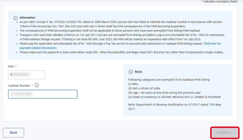 If it’s already linked, a green tick will appear saying, “Your PAN is already linked to Aadhaar.”